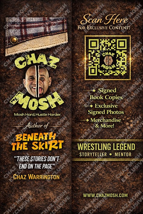 Designed exclusively for ChazMosh.com, this premium double-sided bookmark is a must-have for any true fan. Whether you’re reading Chaz’s wild journey from wallflower to wrestling wonder, or just adding to your collection, this bookmark keeps you connected to the Headbanger universe.